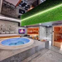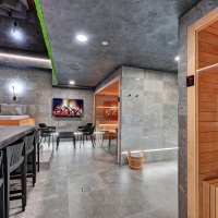 Čeká vás vířivka, infra sauna se solnou stěnou, relaxační zóna, pohodlné křesla, klimatizace a také finská sauna s možností nastavení teploty podle vašich preferencí – od příjemných 60 °C až po intenzivních 110 °C. Hudbu si pustíte přes tablet ve třech zónách, k dispozici je i televize s přístupem k Netflixu, YouTube, Disney+ a Spotify. Součástí wellness je také samostatná šatna, oddělená sprcha a toaleta. K dispozici je minibar s alko i nealko nápoji a možnost objednat občerstvení i koktejly.