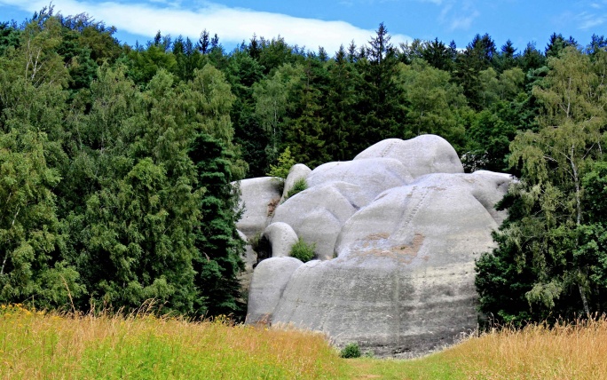 Bílé kameny se nacházejí v Lužických horách. Jedná se o samostatný geomorfologicky významný celek pískovcových skal ležící nedaleko obce Jítrava. Někdy se nazývají také Sloní kameny a dosahují výšky až 20 metrů. Od hlavní silnice, kde se nachází i parkoviště jsou opravdu na dohled. Nenáročná procházka k nim zabere jen pár minut. Od kamenů se poté dá vyrazit lesem například na Horní sedlo.
