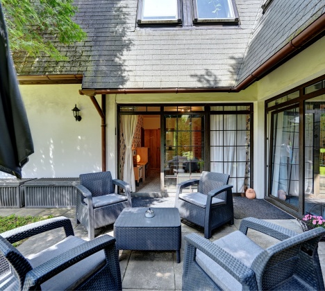 Z obývacího pokoje vedou dveře přímo na terasu s posezením, odkud je přístupná také zahrada s trampolínou a houpačkou. Součástí vybavení apartmánu je dvě herní konzole Xbox s výběrem 30+ her a DVD přehrávače s rozsáhlou filmovou sbírkou. Apartmán Garden je ideální volbou pro rodiny s dětmi i páry, které upřednostňují soukromí a zároveň chtějí využívat služby hotelu – hosté mají po celý pobyt k dispozici hotelové snídaně i vstup do hotelového lobby baru či dětské herny.